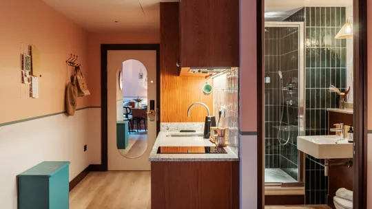 Located in the heart of Chiswick, London’s first hometel comprises 86 design-led studios, each fitted with a kitchenette, alongside a gym, laundry facilities and Winnie's Cafe and Bar.
