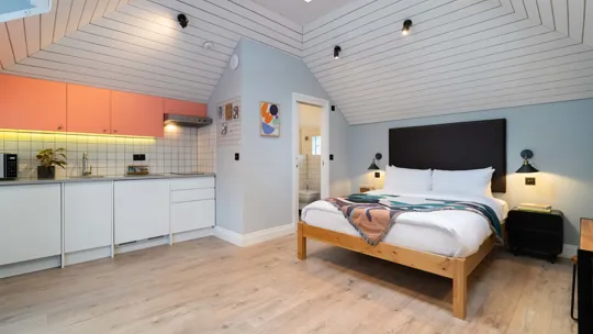 The fully electric hometel is powered by 100% renewable electricity and supported by an air source heat pump and on-site solar panels. Where energy demand cannot be reduced further, operational emissions are offset through nature-verified carbon removal projects, enabling guests to enjoy a carbon neutral stay. room2 Hammersmith has been recognised with a Green Tourism Gold award.