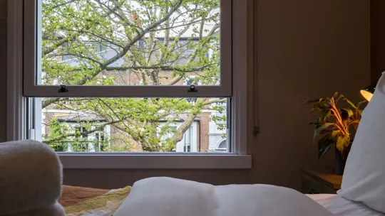room2 Hammersmith operates as Lamington Group’s research and development lab. A scaled-back version of the full hometel model, it retains the flexibility and personality that define the brand. Formerly a dilapidated 15-bedroom B&B, the building was acquired and transformed through a series of extensions and a full conversion into its current form, followed by a comprehensive energy retrofit completed in 2024.