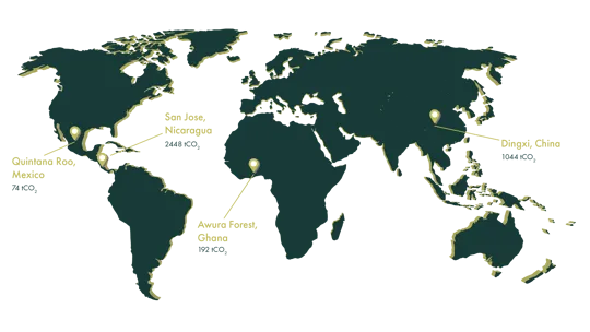 Between 2021 and 2023, we’ve invested in high-quality carbon offset projects that restore land, enhance biodiversity and sequester carbon. Projects have included reforestation, afforestation and sustainable farming in Dingxi, China, Nicaragua and Ghana, contributing to the total sequestering of 174.6 million tonnes of CO2.